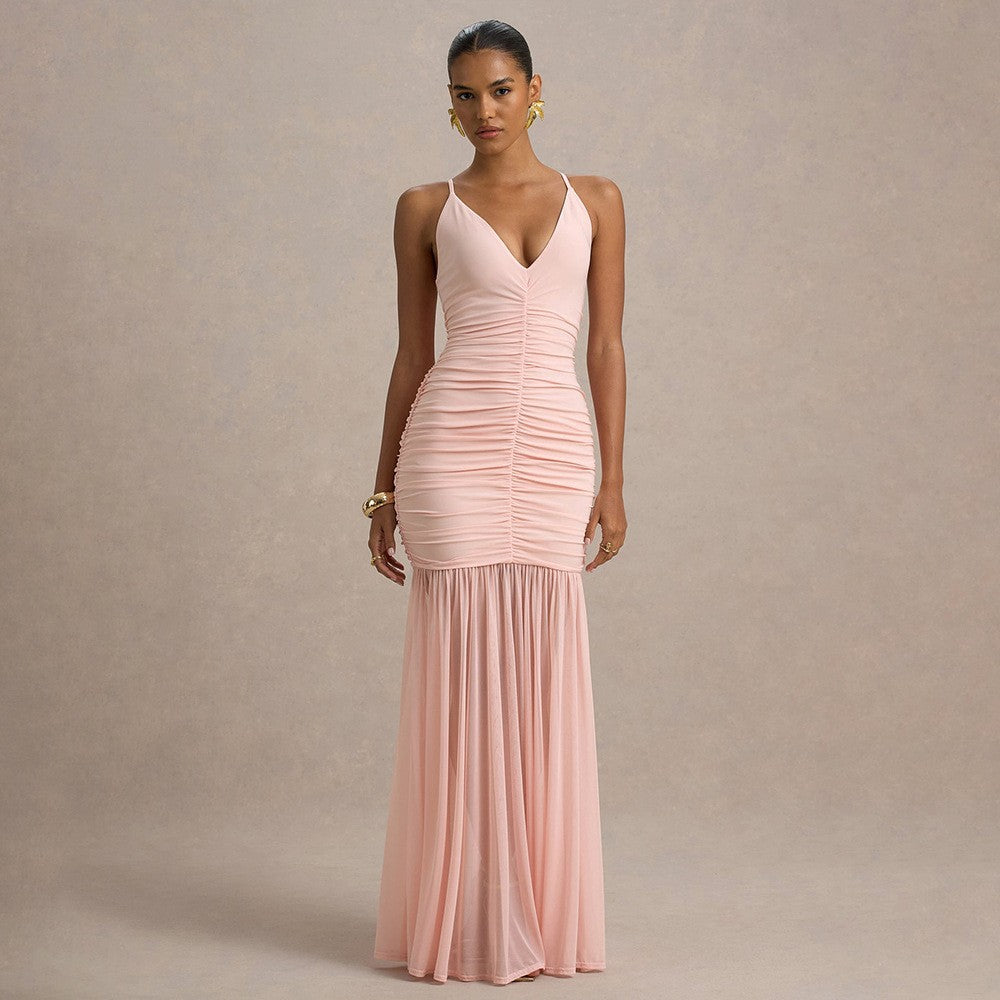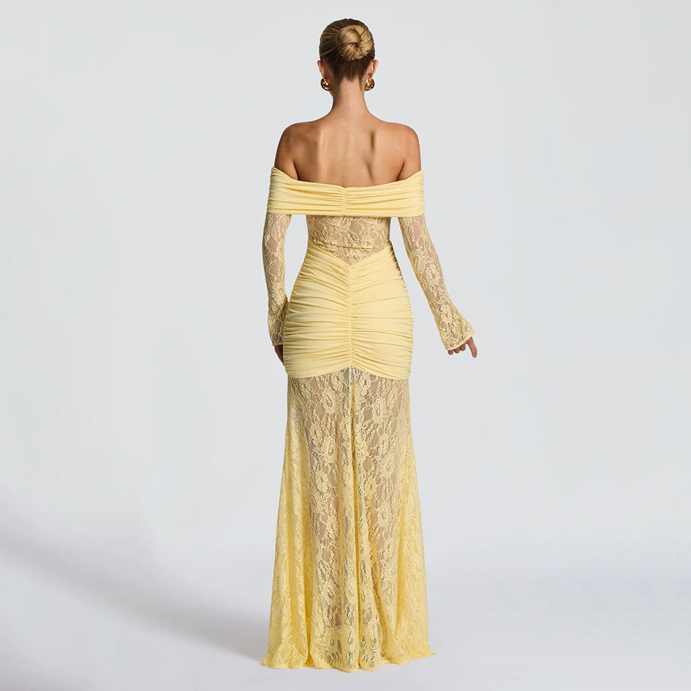 Sleeveless Off-the-Shoulder Lace-Up Backless Jacquard Bodycon Maxi Dress$73.90 USDDescribe your product
