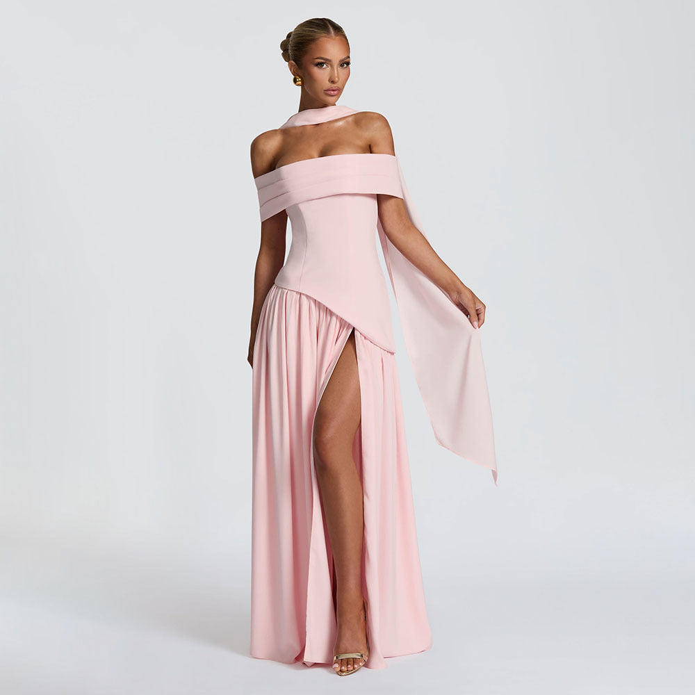 Long Sleeve Shawl Lace Maxi Dress Set