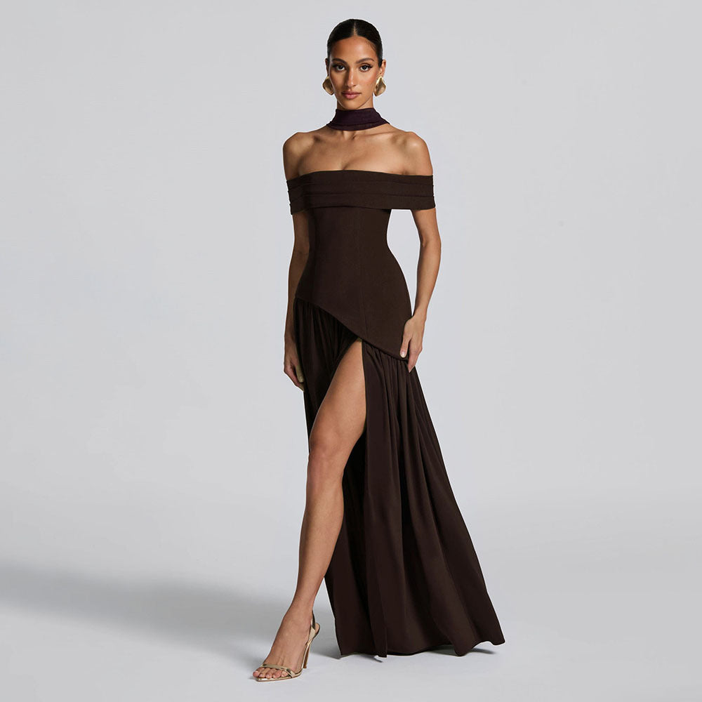 Sleeveless Halter V-Neck Maxi Dress