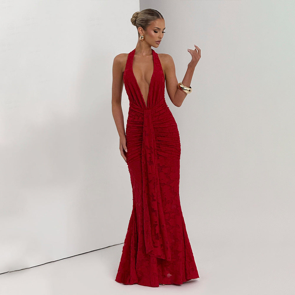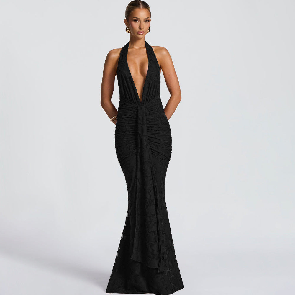 Sleeveless Halter V-Neck Backless Maxi Dress