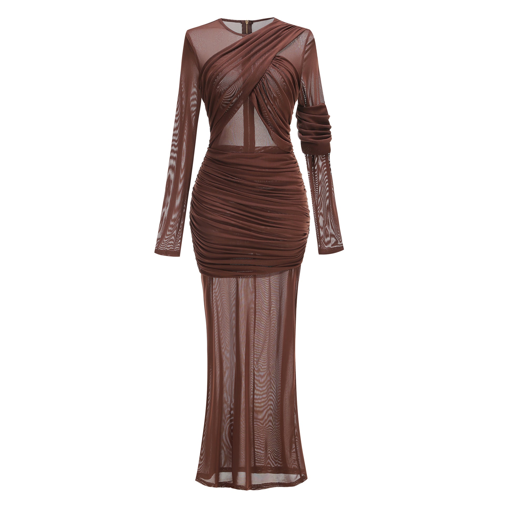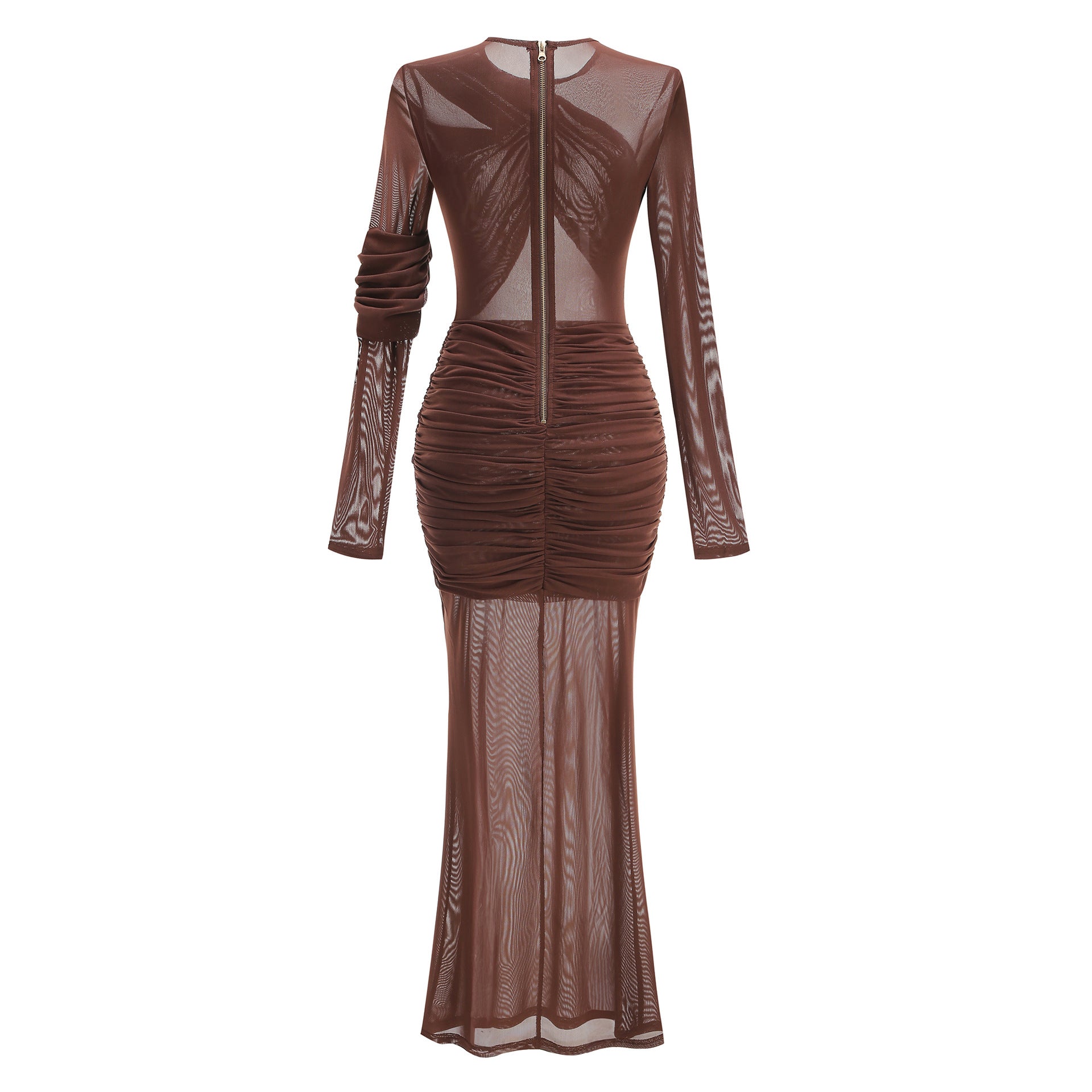 Long Sleeve Mesh Ruched Maxi Dress