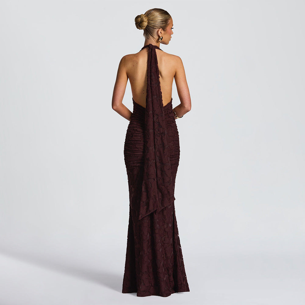 Sleeveless Halter V-Neck Backless Maxi Dress