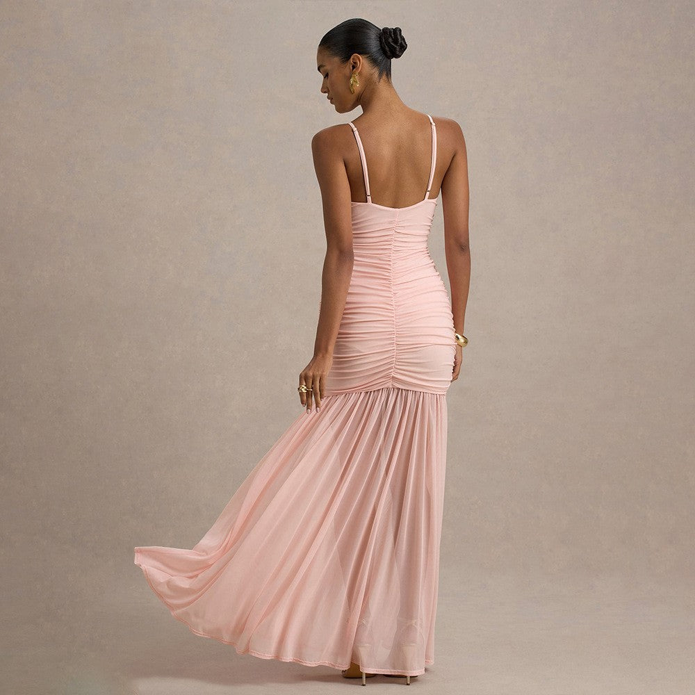 Sleeveless,bodycon,V-neck,backless,maxi dress.